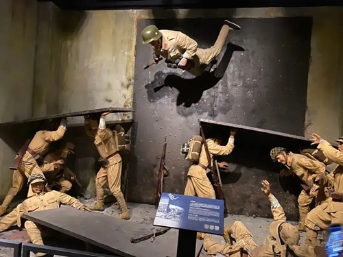 从纪念馆蜡像设置的情景看,任何稍有军事常识的人都不会相信日军的这两块钢板能够挡得住手榴弹,也不会相信手榴弹在侧旁爆炸的弹片不能对日军造成杀伤,以至于必须不得不用“人肉炸弹”进行反制。