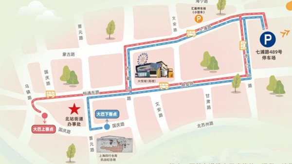 旅游大巴上、下客点及停车场指引图(请勿违停,爱国、守法)
