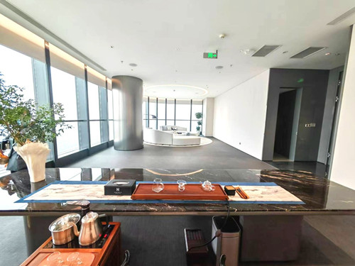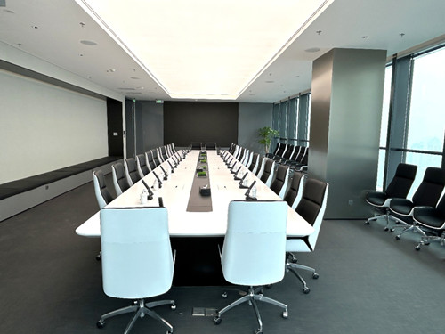 该上海办公室出租房屋位于汇能大悦中心48楼顶层配套会议中心,路演厅(可容纳230人左右,可做3分隔),会议室+茶歇厅+茶室+接待室*2+圆桌会议室。