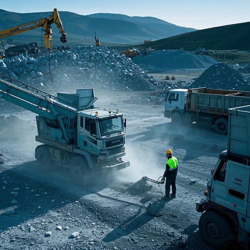 粗碎:通过颚式破碎机对开采来的大块岩石进行初步破碎,将其粒度减小到一定程度,以便后续的加工处理。例如,将粒度为1000mm左右的大块岩石破碎至200-300mm。