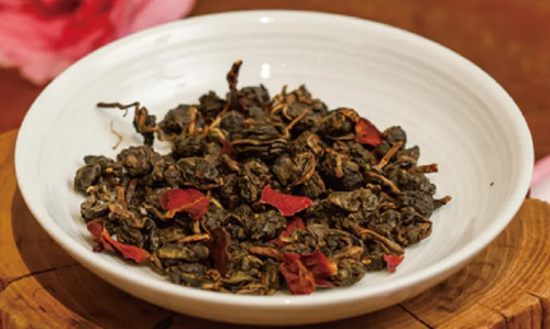 玫瑰鸟龙:以娇艳欲滴的新鲜玫瑰客制,玫瑰香馥郁,滋味甜香醇厚,茶韵回甘。