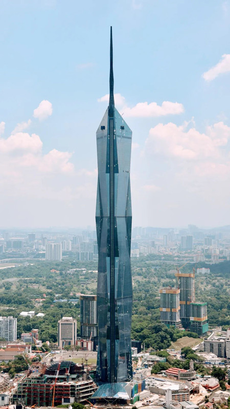 独特外形:设计为钻石形玻璃刻面,象征马来西亚国家的多元化;塔楼的外形设计灵感来源于马来西亚第一任首相、国父东古・阿卜杜勒・拉赫曼64年前振臂高喊“默迪卡”(独立)的手势,整体呈现水晶塔状,玻璃幕墙搭配切割的立面,在不同方位都能感受到其恢弘气势。