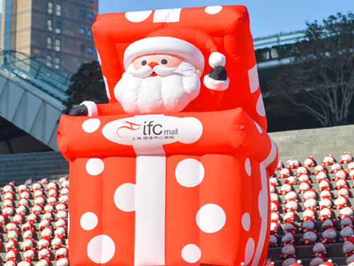 LG1户外广场上,多款巨型气模圣诞老人闪亮登场,以独特的姿态点亮了整个节日氛围;