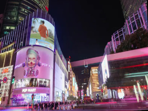 你的60秒高光时刻,城市帮你放大,宏伊国际广场外侧的超大 LED 屏幕;