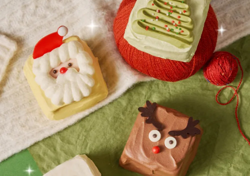 关于送礼,我们想做得再多一点,以奶油的笔触勾画出可爱的圣诞造型手工姜饼人饼干、巧克力配件,不仅是装饰,更是看得见的用心。