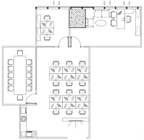 户型格局:一个大会议室(目前里面放的是办公桌),一个财务室,一个经理室,两个办公区,进办公室有玄关,有员工操作台。