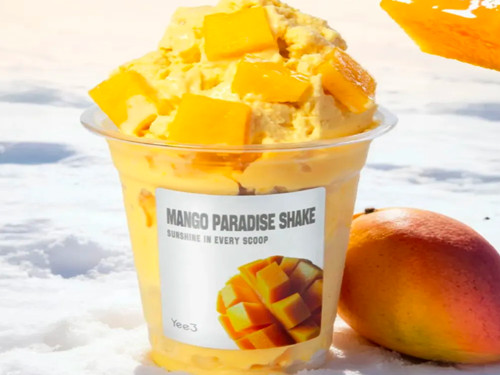 首选“芒果铺满”小料,让明亮果香席卷每一丝冰爽,享受被果肉365包围的快乐;