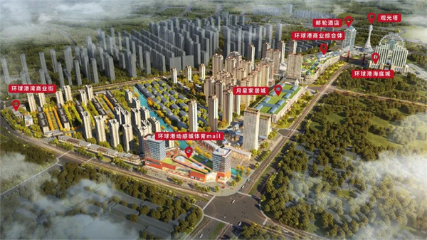 沈阳环球港超级商业航母,规划总建筑面积约200万㎡,项目规划包括环球港湾生态居住区、环球港动感城、月星家居MALL、4.0环球港奥特莱斯商业、环球港海底城、五星级邮轮酒店及标志观光塔、跨街金门大桥等功能业态。