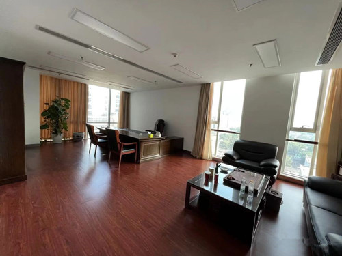 阜成门地铁口附近,华远大厦860平办公室出租,精装修交付,办公室装潢为高级装饰标准,而且采光好,还有办公家具,随时可看。