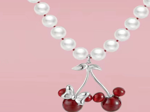 炽热深红锆石跳动的心动信号,镂空米奇爱心项链,满镶红色米奇耳钉。