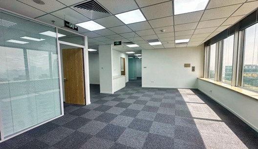 项目整层面积1739㎡,以105㎡/157㎡/199㎡/210㎡为主,目前最大可组合出1038㎡面积。项目目前房源多以遗留装修为主,但可以提供定装房屋,工期预估30天左右。另楼内配套大会议室、功能厅、休息区等,还有优质的国企食堂、露天花园等。