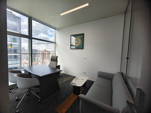【交付】吊顶+乳胶漆墙面+墙板+地毯/地板+架空地板+24小时VRV独立空调+铝合金百叶玻璃隔断+静音精致木门+人脸识别+指纹锁。