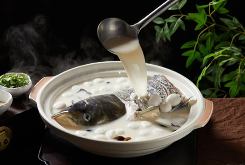 千岛湖鱼头汤:甄选千岛湖活鱼,经数小时文火慢炖,汤体醇厚如乳,入口顺滑,鱼的鲜美在口中层层绽放;