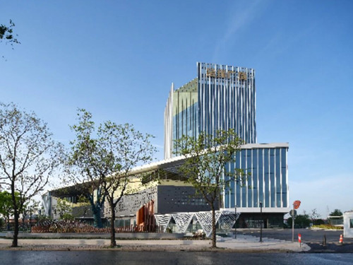 其外观采用现代简约风格,金褐色玻璃帷幕与钢质覆面的结合