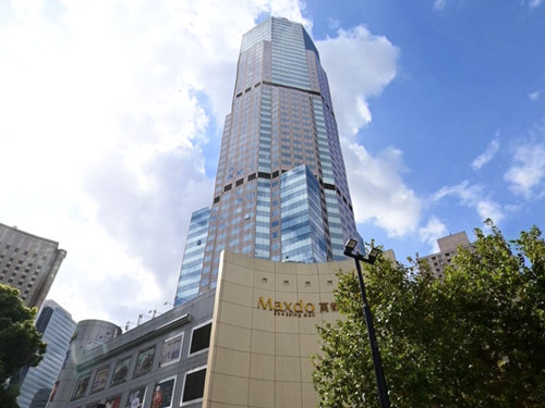 位于延安西路726号,2004年竣工,由两栋28层建筑通过景观中庭连接