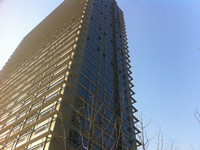该上海甲级写字楼紧邻轨交1、8、10、13号线,交通便捷。其外立面采用“窗扇”设计,大堂挑高9米