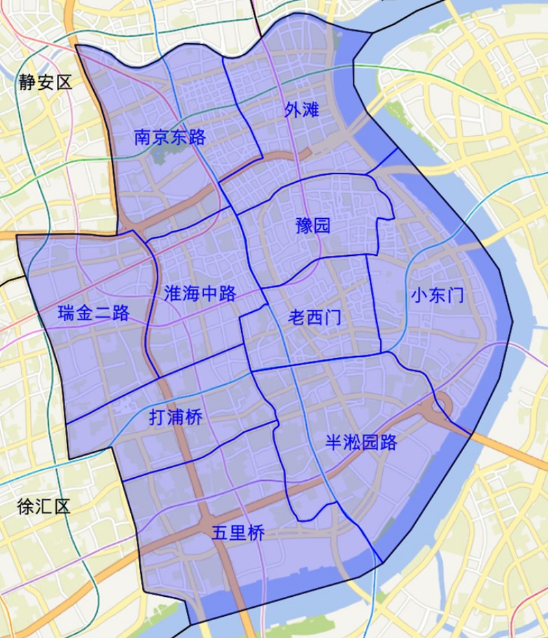 地理位置:地处上海市中部,东和南隔黄浦江与浦东新区相望,西至日晖东路、瑞金南路,北与虹口区、静安区隔苏州河相望。地理坐标介于东经121°27′27″-121°30′18″、北纬31°11′44″-31°14′46″之间。