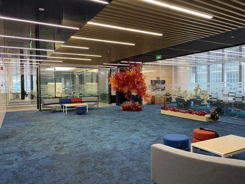设施设备:配备了8部蒂森克虏伯高速电梯,包括客梯、货梯和消防梯,确保高效的垂直交通。办公区设有中央空调系统,采用水环VRV空调系统+热泵式新风热回收系统,24小时开放,还提供24小时不间断供电,每层配置有24小时淋浴房,可分单元单独计量空调费用。