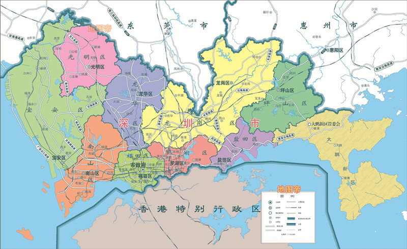 海陆位置:东临大亚湾和大鹏湾,西濒珠江口和伶仃洋,南隔深圳河与香港相连,北部与东莞、惠州接壤,辽阔海域连接南海及太平洋。