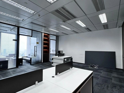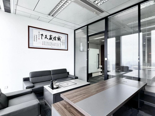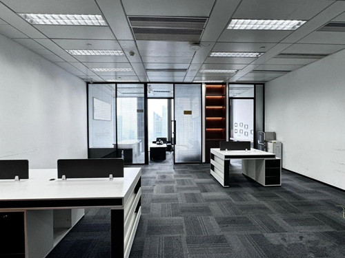 交付标准:该广州办公室出租房屋内为高档广州办公楼装修标准,单位带大气前台,2个房间,一个老板间,一个茶水间,员工区带部分从广州办公家具城购买高档家私。