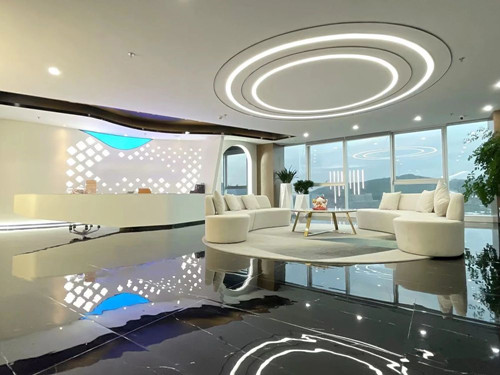 双大堂设计:独特的双大堂设计,包括首层大堂和空中大堂,其中首层大堂挑高较高,空间开阔,为企业提供了宽敞、气派的商务接待空间,能彰显企业形象。