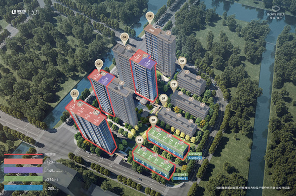 在售建面约:高层约:120-145㎡,叠墅约:208-233㎡,叠墅平层约:233㎡
