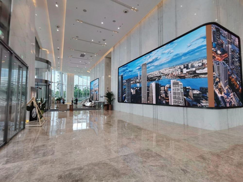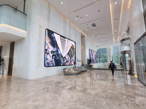 挑高设计:星扬西岸中心一楼大堂挑高约10米,空间开阔,该上海甲级写字楼大堂给人以强烈的视觉冲击,营造出大气、豪华的商务氛围。