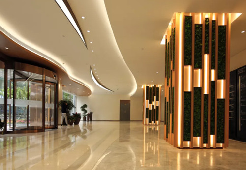对于整体改造设计的反复推敲,渐境设计摒弃了以往传统办公的刻板、机械,着重突出建筑优雅、舒适、简约和高效的一面,利用外围绿化、柔和暖光、以及绿色休闲区域等细节打破对以往所带给人们缺乏商务氛围的印象,呈现出作为高端商务新地所具有的流光溢彩、品质卓越。