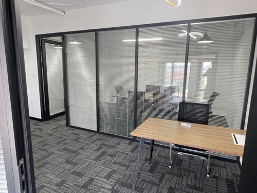 室内格局:logo墙+2个隔断+12个工位