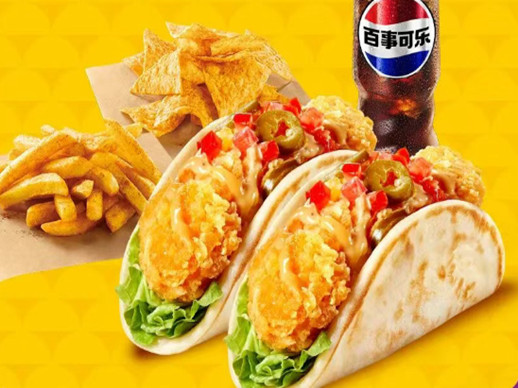 5折5件塔可单人餐:¥26.7起,塔可*2+粗薯+玉米片+可乐。